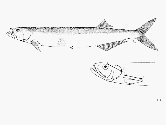 Diagnosis: The slightly longer pectoral fin, 13-18% of standard length, and the absence of black markings on the dorsal fin tip are the only satisfactory characters separating this species from Chirocentrus dorab; also there is no black on the anterior part of the anal fin (Ref. 188).