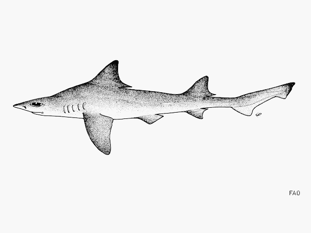 Brown or grey dorsally, lighter below; dorsal and caudal fins may have darker tips and leading edges (Ref. 5485).