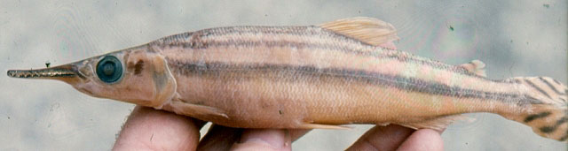 Dorsal spines (total): 0; Dorsal soft rays (total): 13 - 17; Anal spines: 0; Anal soft rays: 15 - 18. Diagnosis: snout longer than half the head length (southern Nigeria and Cameroon); body depth 5.25-7x and head length 2.8-3x SL; head 3.75-4.85x longer than wide; snout more than half of head length (53-58%); scale formula 11.5-13.5/95-100/11-13 (Ref. 2936, 86396). 92-104 (Ref. 81638) or 95-100 (Ref. 2936, 86396) lateral line scales.